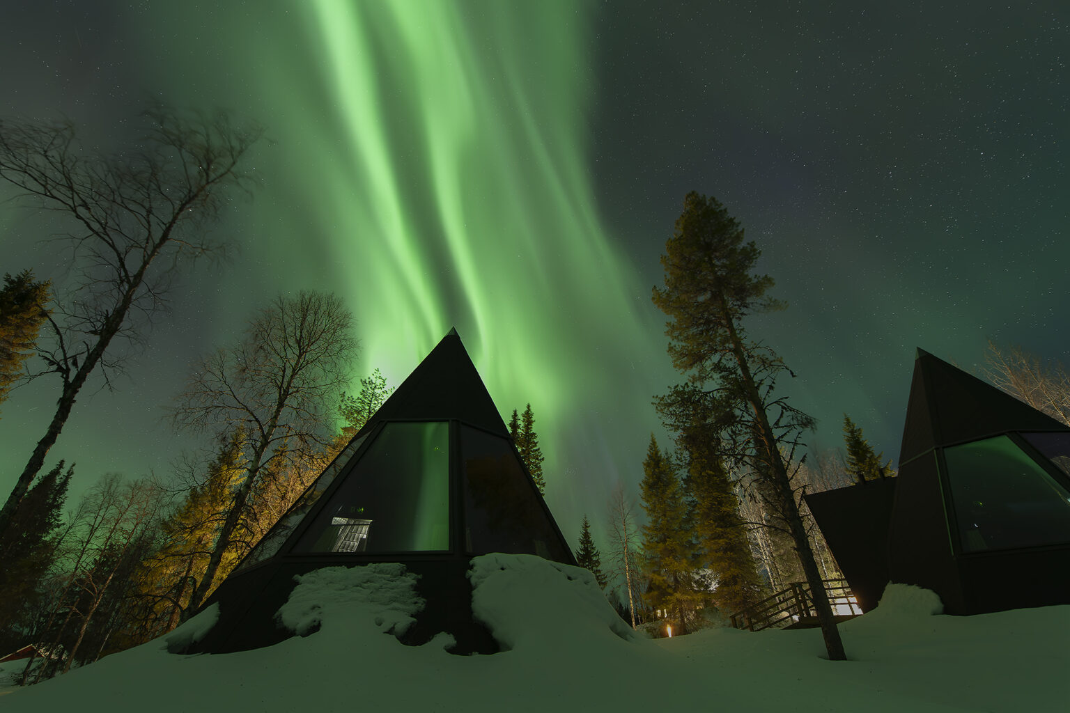 The remote location of Nivunki village in the wilderness offers good opportunities for observing the Northern Lights, because there is no light pollution. Dark skies serve as the perfect canvas for the Northern Lights to paint their mesmerizing displays.