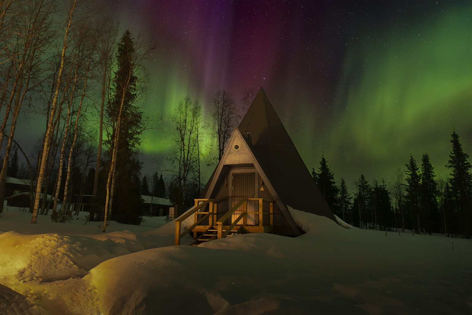 Step inside our Northern Lights hut, kota, and experience the essence of Lappish hospitality – where tradition meets modern comfort and the Aurora Borealis dance across the pristine night sky.